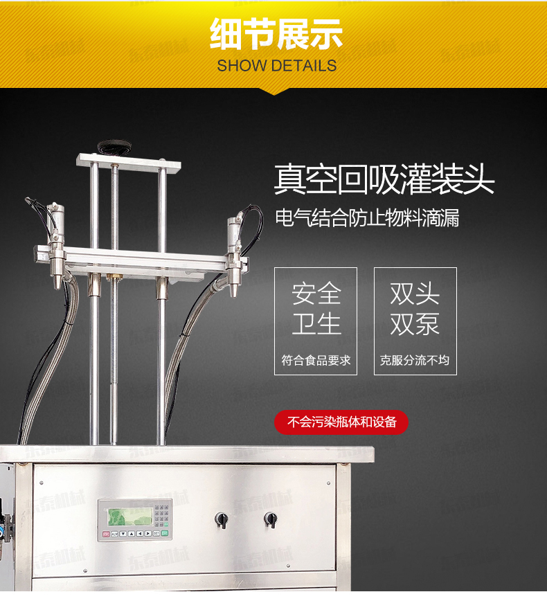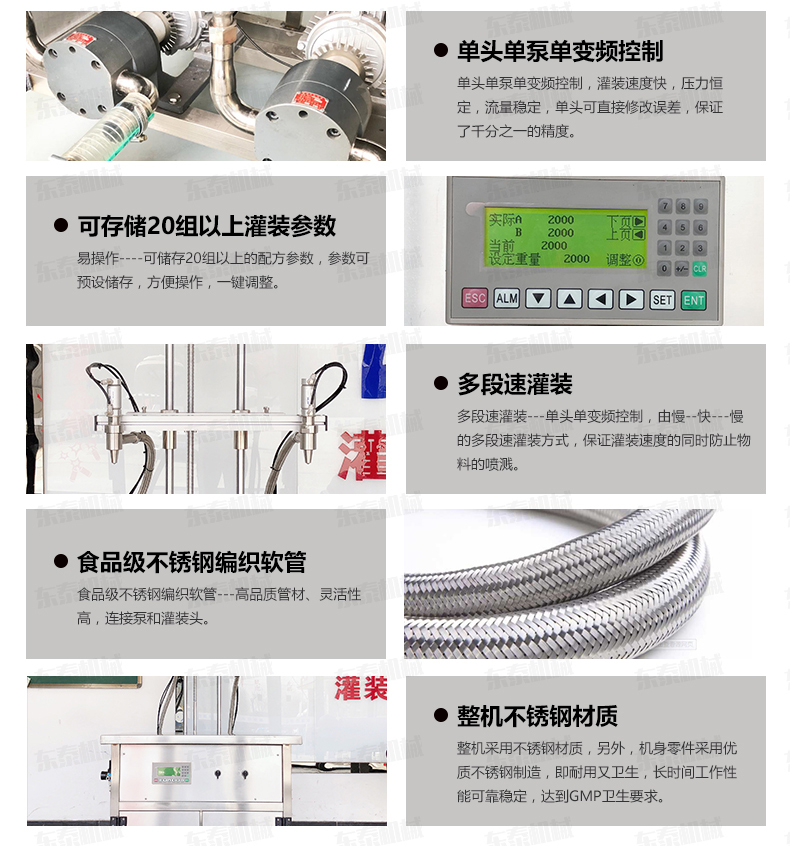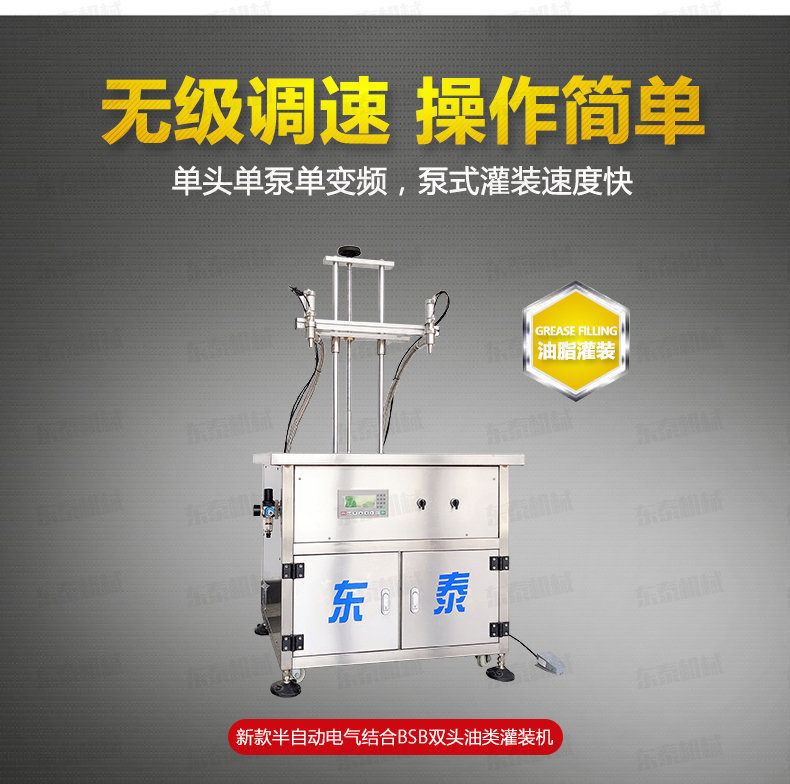 半自動(dòng)食用油灌裝機(jī)設(shè)備介紹 半自動(dòng)食用油灌裝機(jī)適用于各種食用油、潤(rùn)滑油等粘液體的定量灌裝,如花生油,大豆油,菜籽油、香油,潤(rùn)滑油等油類(lèi)的灌裝。采用先進(jìn)的定量灌裝技術(shù),結(jié)合微電子智能控制技術(shù)單頭單變頻