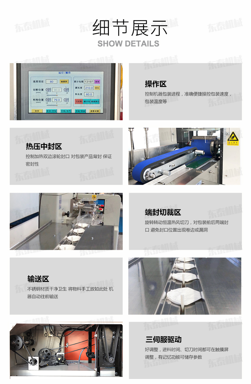 口罩包裝機(jī)產(chǎn)品簡介: 1.口罩包裝機(jī)速度快省人工山東濟(jì)南供貨枕式包裝機(jī)是目前國內(nèi)新型的自動連續(xù)收縮 包裝設(shè)備,采用石英遠(yuǎn)紅外管加熱,節(jié)電高效(節(jié)電15以上); 2.收縮溫度和電機(jī)傳動速