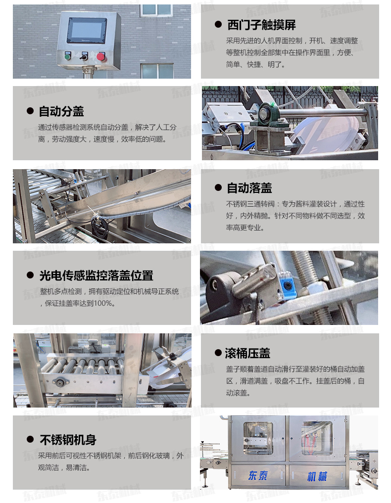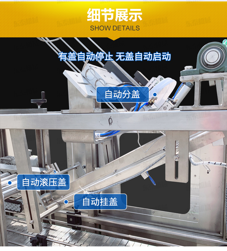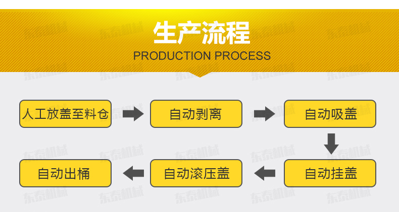 全自動(dòng)落蓋機(jī)操作流程 人工放蓋至料倉——自動(dòng)剝離——自動(dòng)吸蓋——自動(dòng)掛蓋——自動(dòng)滾壓蓋&mdash