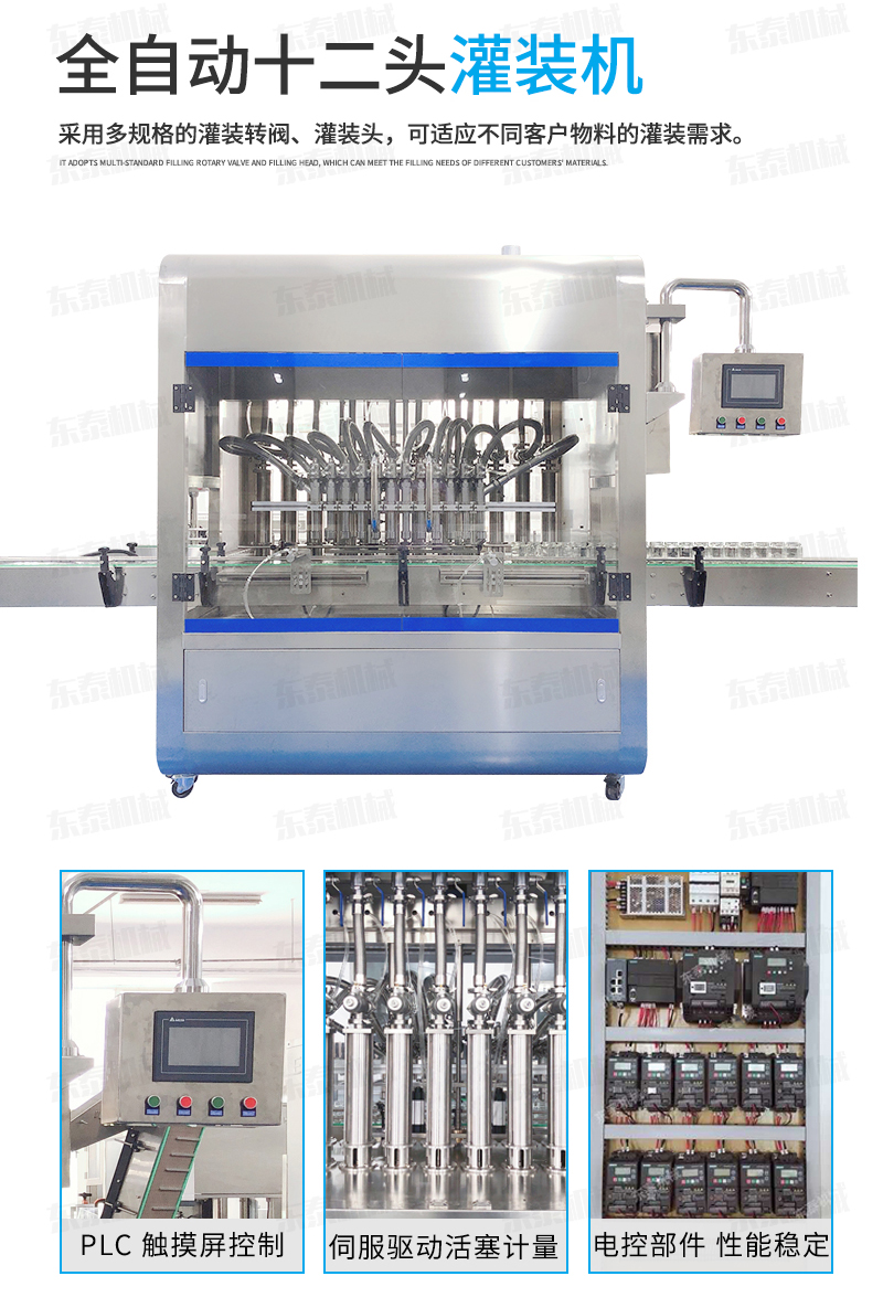2、灌裝機(jī)以進(jìn)口PLC電腦控制、伺服驅(qū)動(dòng)計(jì)量,全彩色觸摸屏人機(jī)界面,一鍵完成計(jì)量切換確保容量之調(diào)整簡(jiǎn)易、快捷、準(zhǔn)確。是任何形式的灌裝機(jī)無法替代的;