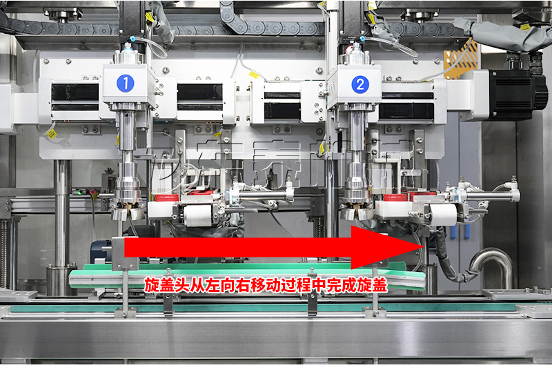 FXG-2E型全自動(dòng)雙頭跟隨式旋蓋機(jī)由理蓋輸蓋機(jī)構(gòu)、抓蓋旋蓋機(jī)構(gòu)、運(yùn)動(dòng)模塊、 輸送機(jī)構(gòu)及控制系統(tǒng)組成。整機(jī)結(jié)構(gòu)簡(jiǎn)單、調(diào)整方便。該設(shè)備為我司研制,產(chǎn)品在移動(dòng)過(guò)程中,完成旋蓋動(dòng)作。區(qū)別于常規(guī)