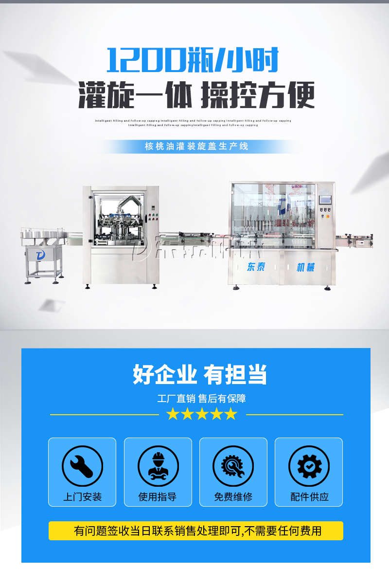 本灌裝流水線設(shè)備具有穩(wěn)定可靠、自動(dòng)化水平高,相比同類產(chǎn)品有著更長(zhǎng)的使用年限,維護(hù)簡(jiǎn)單,整線中各設(shè)備的協(xié)調(diào)性、連貫性強(qiáng),整線設(shè)計(jì)合理等特點(diǎn)。灌裝設(shè)備采用獨(dú)家專利系統(tǒng)結(jié)構(gòu),為當(dāng)今行業(yè)內(nèi)水平,整線滿足量產(chǎn)化、集成化生產(chǎn)的需要。