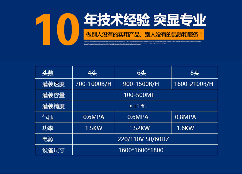 設(shè)備特點(diǎn): 1、快速清洗、便于調(diào)整、容積缸體動(dòng)作無極調(diào)速,適合不同規(guī)格、不同物料的灌裝。充填量一次調(diào)整完畢,每個(gè)容積缸體可分別微量調(diào)節(jié),灌裝精度高且一致性好。接觸物料的材料為316不銹鋼、硅橡膠、符合QS規(guī)范。 2、進(jìn)口減速電機(jī)無極調(diào)速控制灌裝柱塞缸,不僅適合各種膏體,亦適合醬料。 3、進(jìn)口電磁離合器和電磁制動(dòng)器配合動(dòng)作,消除慣性,灌裝精度高。 4、人機(jī)界面與PLC通訊,調(diào)試設(shè)備或更換品種只需在屏幕上設(shè)定。進(jìn)瓶、定位、灌裝充填、出瓶均自動(dòng)作業(yè)。 5、灌裝時(shí)瓶子不到位、瓶子堵塞活出液管沒有插進(jìn)瓶子時(shí)設(shè)備將自動(dòng)保護(hù),排除后繼續(xù)作業(yè)。