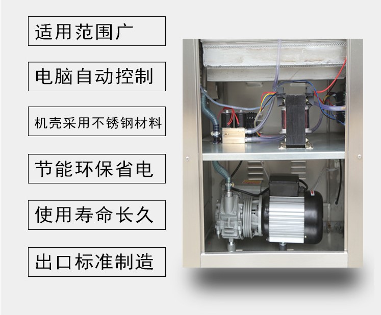 架體采用國際標(biāo)準(zhǔn)食品用304不銹鋼板,強(qiáng)度高,不易破損,它獨(dú)特的傾斜臺(tái)面設(shè)計(jì),可以保證產(chǎn)品內(nèi)的水份不流失,從而使產(chǎn)品的含水真空包裝更易操作。