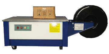 該打包機(jī)為半自動(dòng)打包機(jī),打包臺(tái)面較低,適用于各種較重型貨物的打包,如紙箱、郵政包裹、書(shū)刊雜志等較輕物品的的捆扎打包。