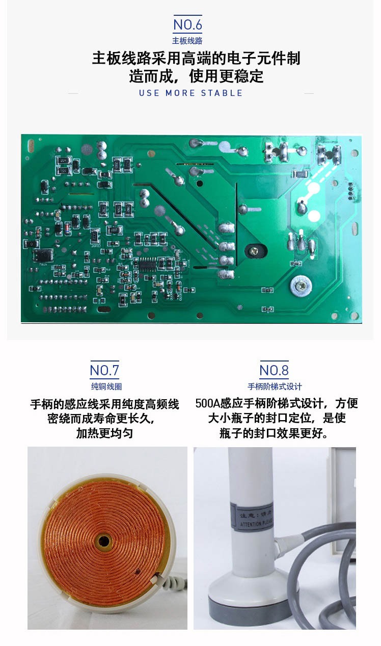 該該封口機(jī)是一種便攜式電磁感應(yīng)加熱封口設(shè)備,專為制藥、化工、農(nóng)藥、食品、化妝品、輕工行業(yè)對容器進(jìn)行鋁箔嚴(yán)密封口。