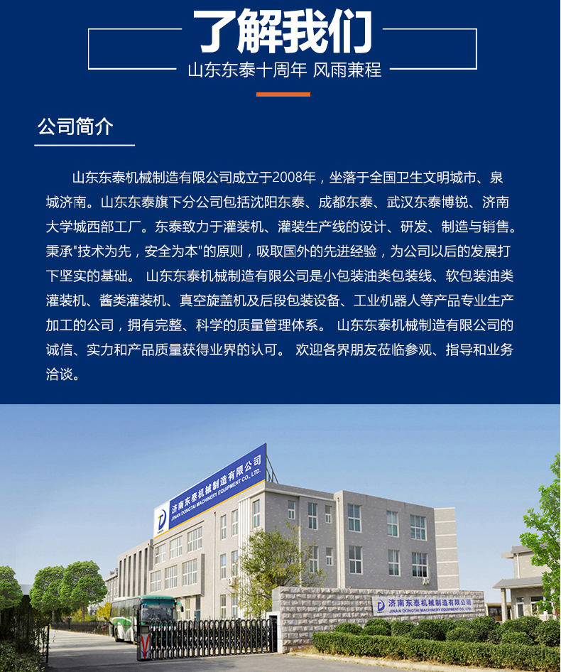 沈陽東泰機(jī)械隸屬于山東東泰機(jī)械,主營粉劑包裝機(jī)、醬類醬料包裝機(jī)、食用油灌裝機(jī)、食品包裝機(jī)、包裝流水線、灌裝生產(chǎn)線等產(chǎn)品,并且為東北地區(qū)客戶提供售后維修服務(wù)...
