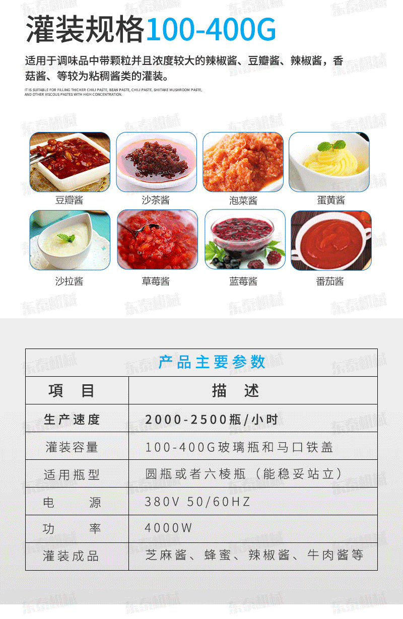 目前我們公司身為國(guó)內(nèi)的辣椒醬灌裝機(jī)廠家在國(guó)內(nèi)屬于比較專業(yè)的,辣椒醬灌裝機(jī)設(shè)備價(jià)格不僅是有著優(yōu)勢(shì)而且不管是設(shè)計(jì)理念和外觀模型都已經(jīng)與國(guó)際接軌,可以說(shuō)正是因?yàn)樵摍C(jī)的出現(xiàn)才能夠解決了一些醬料廠家遇難的難題和困難,全套辣椒醬灌裝機(jī)機(jī)械廠家已經(jīng)是對(duì)設(shè)備從外觀設(shè)計(jì)與以往的設(shè)計(jì)方式完全的不同,變得簡(jiǎn)潔大方,并且是我們進(jìn)行了一些部分附加功能,主要用于一些油料產(chǎn)品的灌裝,能完成自動(dòng)上料、自動(dòng)計(jì)量、自動(dòng)灌裝、和自動(dòng)輸送等功能,可以看到更加的自動(dòng)化了,因此對(duì)于我們這款辣椒醬灌裝機(jī)價(jià)格可以前來(lái)我們東泰公司,將會(huì)給你個(gè)合理的價(jià)格的。