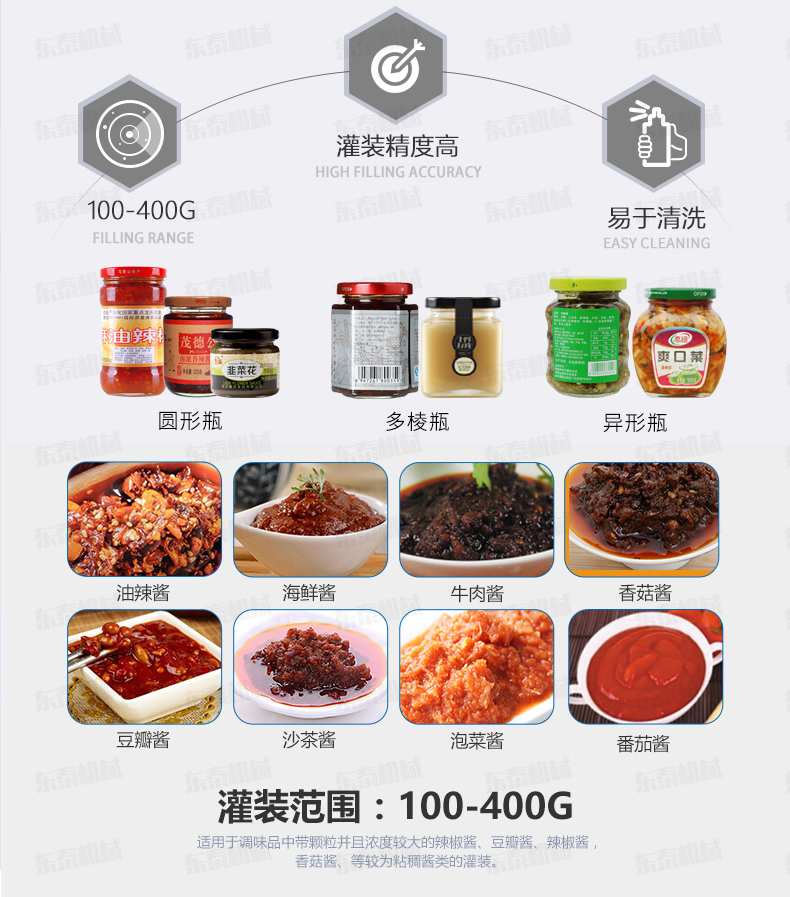 隨著現(xiàn)在人們生活水平的不斷提高,醬料產(chǎn)品的銷售量上正在不斷的增大中,同時(shí)醬料產(chǎn)品的包裝更是受到了人們的關(guān)注,正朝著自動(dòng)化的方向發(fā)展的顆粒醬灌裝機(jī)走專業(yè)化發(fā)展的道路,靠技術(shù)進(jìn)步來(lái)推動(dòng)行業(yè)發(fā)展,為保證出醬料質(zhì)量,顆粒醬灌裝機(jī)符合了現(xiàn)如今的經(jīng)濟(jì)進(jìn)步的要求也符合了新時(shí)代的發(fā)展追求。