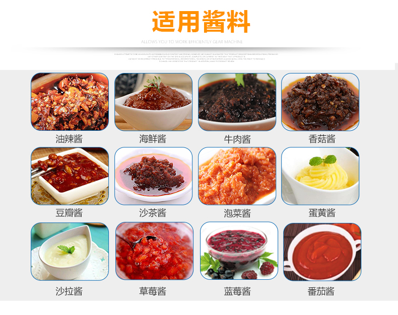 辣椒醬做為一種調(diào)味品,已經(jīng)成功走進(jìn)了人們的日常生活,并占有了很重要的地位。辣椒醬不僅可以單Du食用,還可做為調(diào)味品,增加菜肴的味道于色彩。辣椒醬不僅可以開胃,還能預(yù)防多種疾病的發(fā)生,因此受到了極大的歡迎,市場需求量很大。而辣椒醬包裝一般是在瓶裝等,方便儲存,其中自然少不了灌裝機(jī)的出現(xiàn)和幫助,同樣的辣椒醬的熱銷另一方面也推動了灌裝機(jī)的應(yīng)用和發(fā)展。接下來我們一起看一款“性價(jià)比”和“物美價(jià)廉”同時(shí)兼容的一款顆粒醬灌裝機(jī)到底有什么厲害?