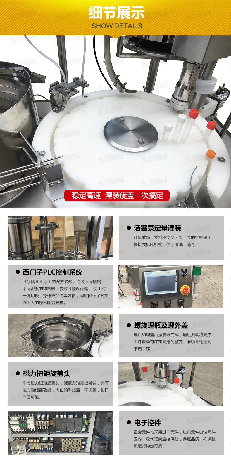 時代發(fā)展中科學(xué)技術(shù)飛速的進步著,使得各行業(yè)發(fā)展都迅速的壯大起來,F(xiàn)在診斷試劑灌裝旋蓋一體機不斷跟隨市場的需要前行被越來越多的應(yīng)用在食品、醫(yī)藥、化工、日化等各個行業(yè)中有著更加明顯的應(yīng)用,則是更加凸顯液體灌裝機的優(yōu)勢,診斷試劑灌裝旋蓋一體機不僅是在自動化方面較為突出,售后服務(wù)方面可根據(jù)客戶的實際生產(chǎn)需求專業(yè)定制個性化需求,來贏得客戶的支持。
